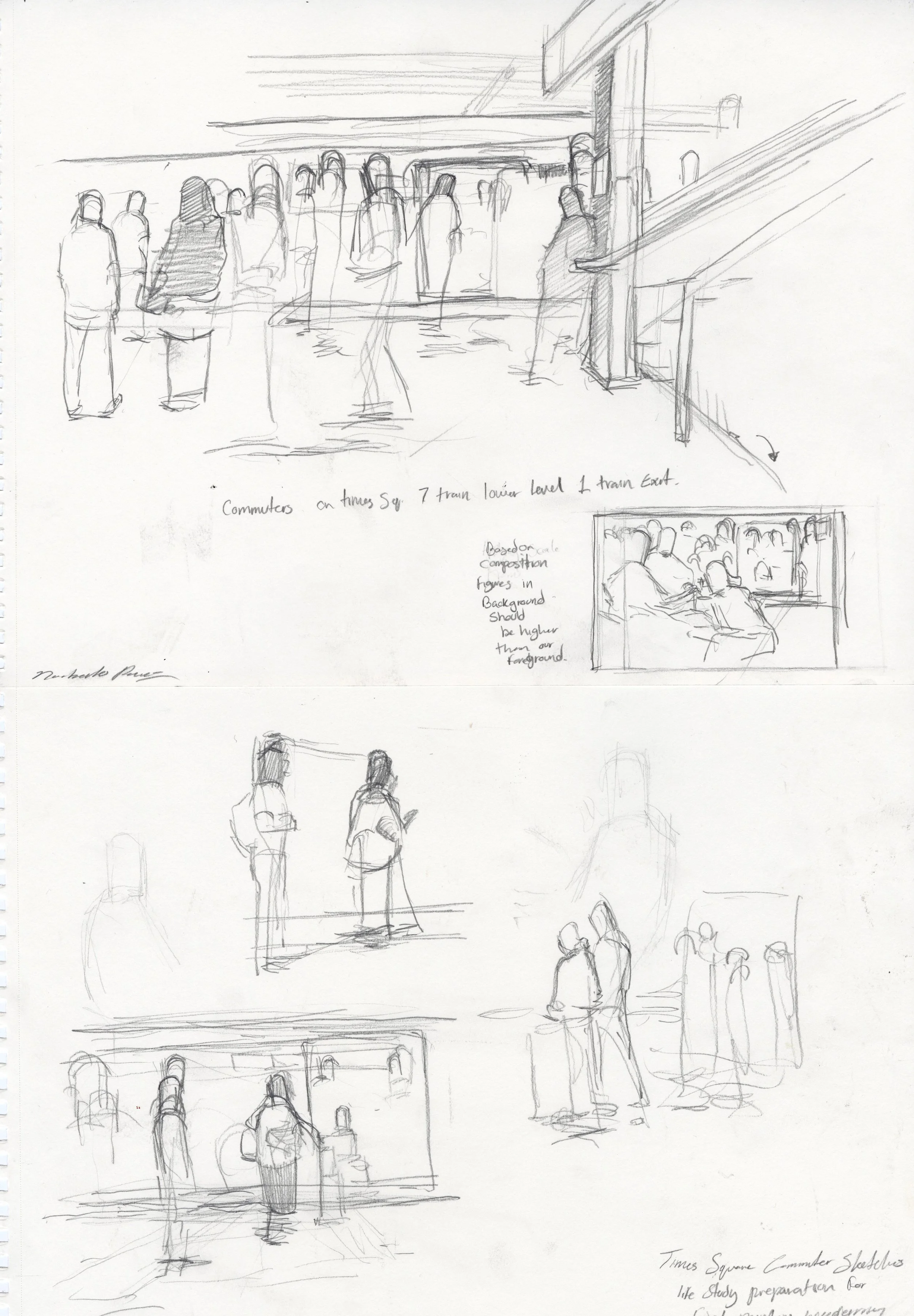 This painting is intended to hit pause on a gathering of vendors at a busy train station.